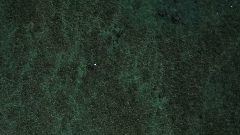 Marine Buoy (2021), a thirty second video, perfectly introduces us to Ortega’s subject. It begins with a variegated dark green streaked with patterns that resemble marble. Off to the center left is a small, round dot--presumably the marine buoy shot by the drone, which moves higher into the atmosphere as the short film continues. In the end of the video, we see two inchoate, slightly lighter green pools within the water, giving the picture a contrast that slightly resembles an organic abstract painting. In the video, the pattern of the sea moves upward; one has the sense of a wall of water traveling skyward. Yet, at the same time, we are looking down at the ocean. The small white object, which recedes to the point of not being seen, is the only man made construction in the film. It serves as a reminder that there is almost no place on earth where we can completely escape the traces of human presence. The sea itself, a monolithic entity, reminds us that most of the world is covered with water, which becomes a topic of interest in its own right. The beauty of large bodies of water is thus imaged in ways that do not emphasize its potential danger so much as demonstrate its capacity for patterns unavailable except from above.