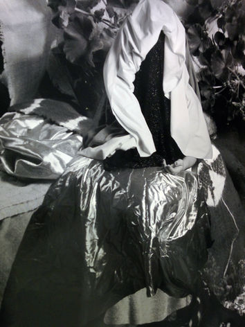 Sabater’s most recent pictures are of subject’s veiled in material holding objects, which conceal identity and are not considered portraits. They are Madonna and childlike figures. “In this series, I've been looking at Victorian-era photos of women holding children while being covered in fabrics. Conversations I have with myself like Why am I drawn to these photos? Then it's additional conversations with myself about the images and the materials in my studio space. Seeing what materials connect. What makes sense for creating the photographs,” Sabater says.
