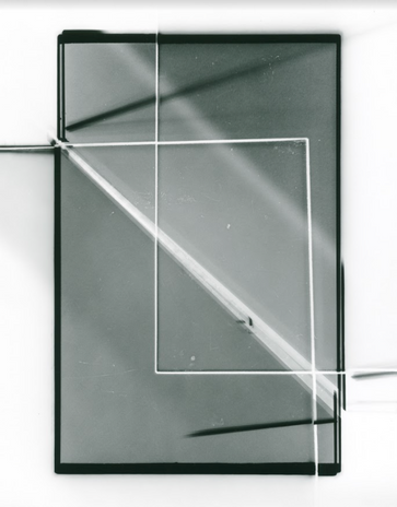Nadja Pelkey: During the construction of the work in the darkroom I’m thinking of how to divide the projected image with sheets of glass, so I’m thinking about balance and breath, and structure and space. I know in general how the light will be divided but I have to rely on a lot of things - my ability to hold the structure in place, my understanding of how the projection might shift, and the exposure length.
